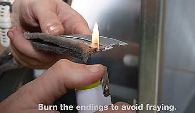 製品の寿命を延ばし、糸のほつれを防ぐために、 ライターで糸の両端を軽く燃やす ブラシの取り付け開始時と終了時に塗布します。これにより繊維が融合し、ブラシの構造が長期間維持されます。