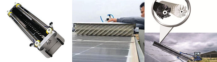その ソーラーパネル清掃用ローラーブラシ 主に3つの構成要素から成り立っています。